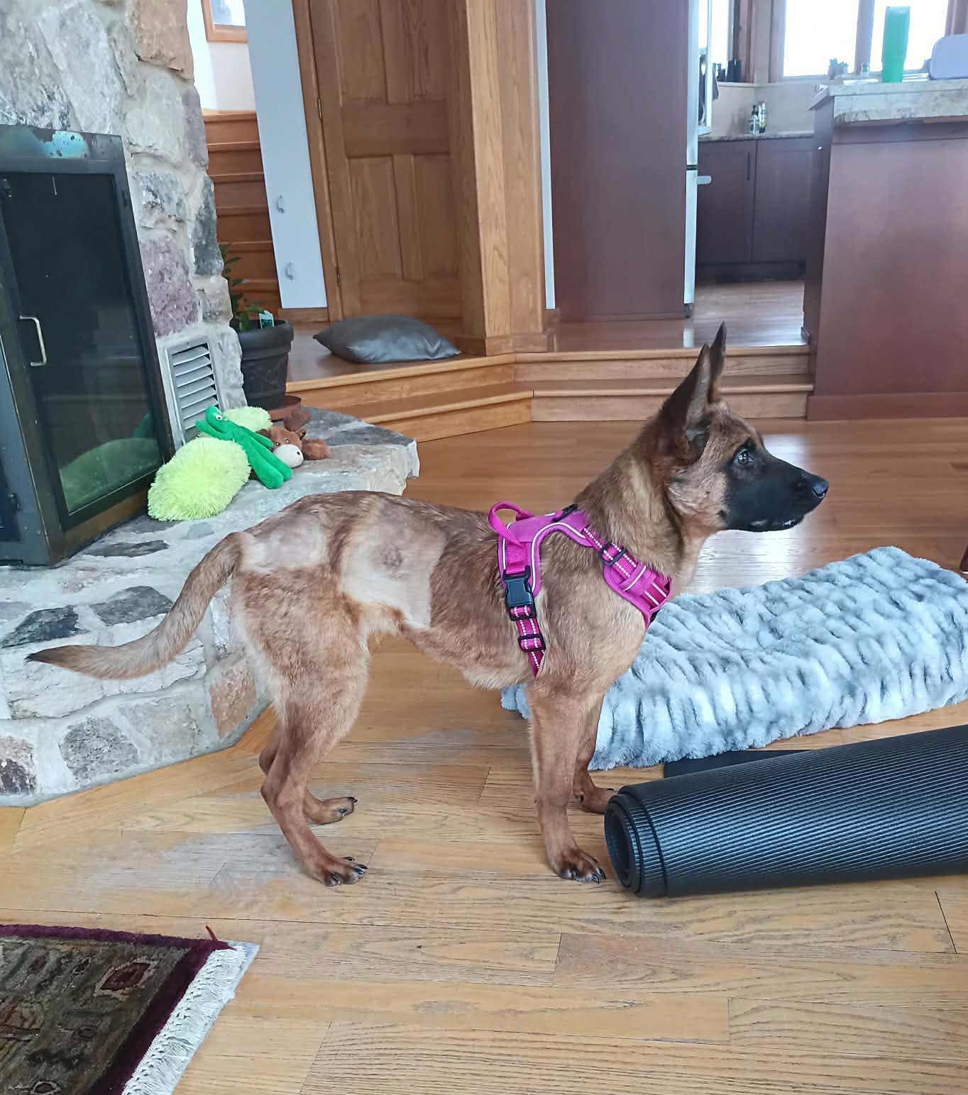 She was spayed and needed to have surgery to remove two nails that appeared to be from a nail gun.