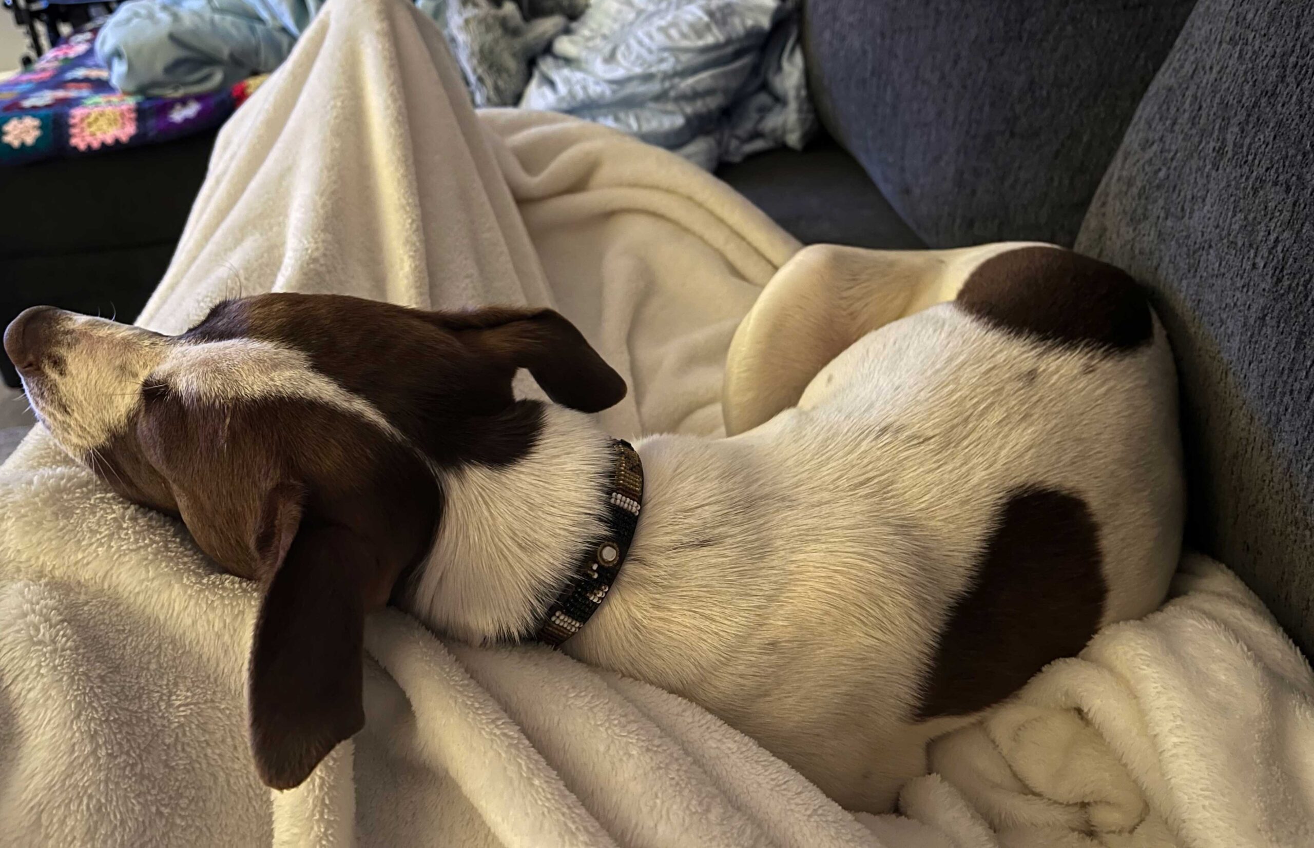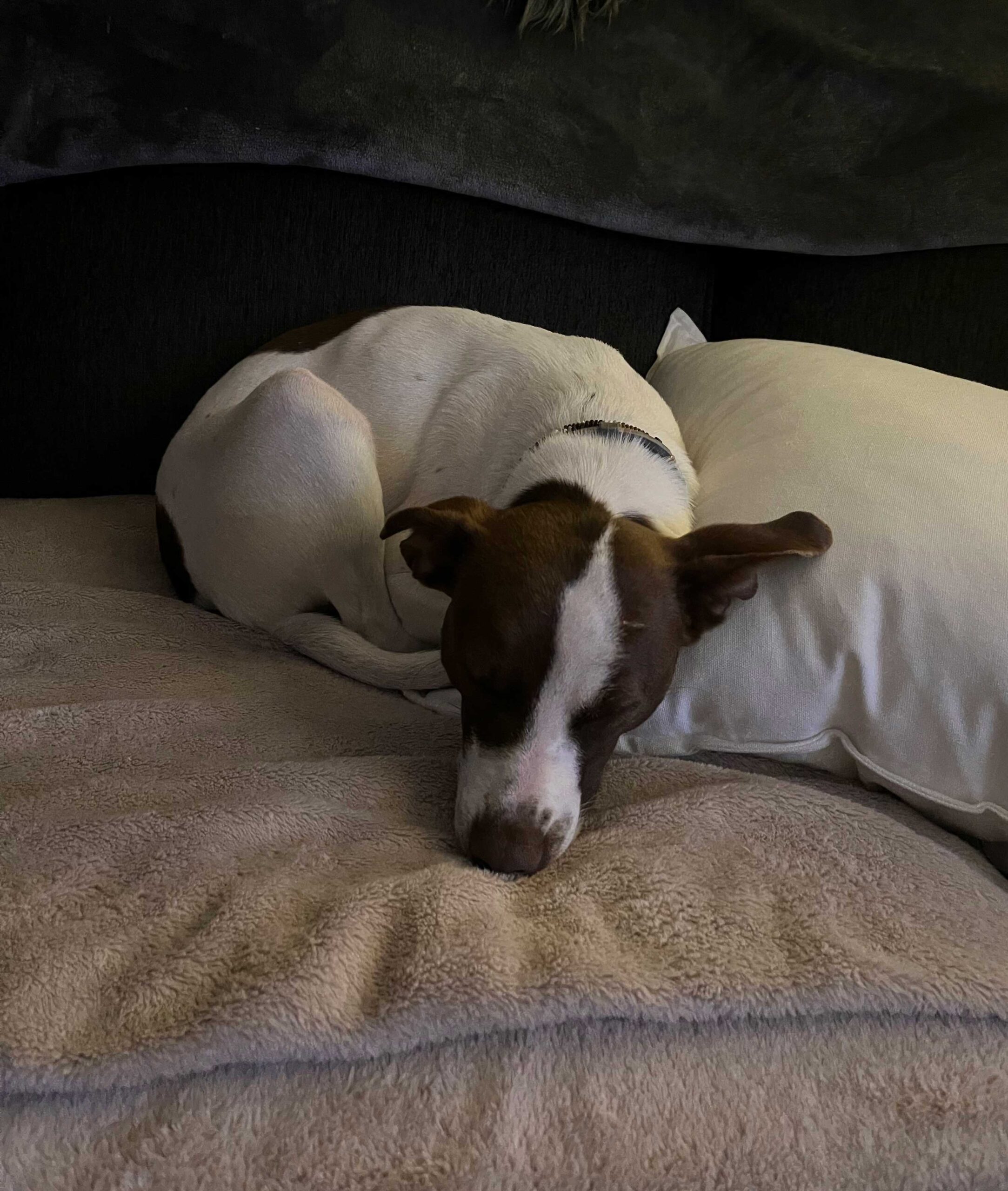 Loves sleeping on the bed, doesn’t move.